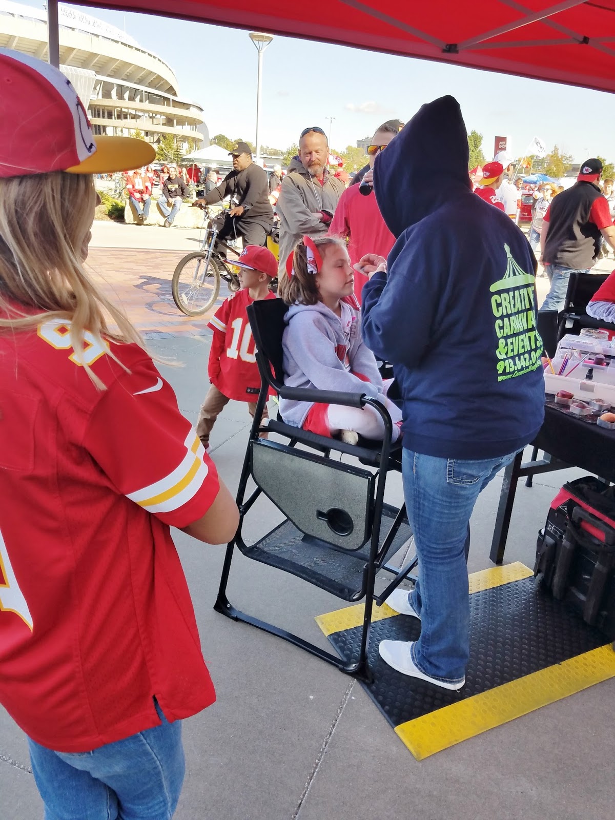 Evie wanted to get her face painted. She asked for a Chiefs unicorn. The lady was super nice, and said she'd do her best.