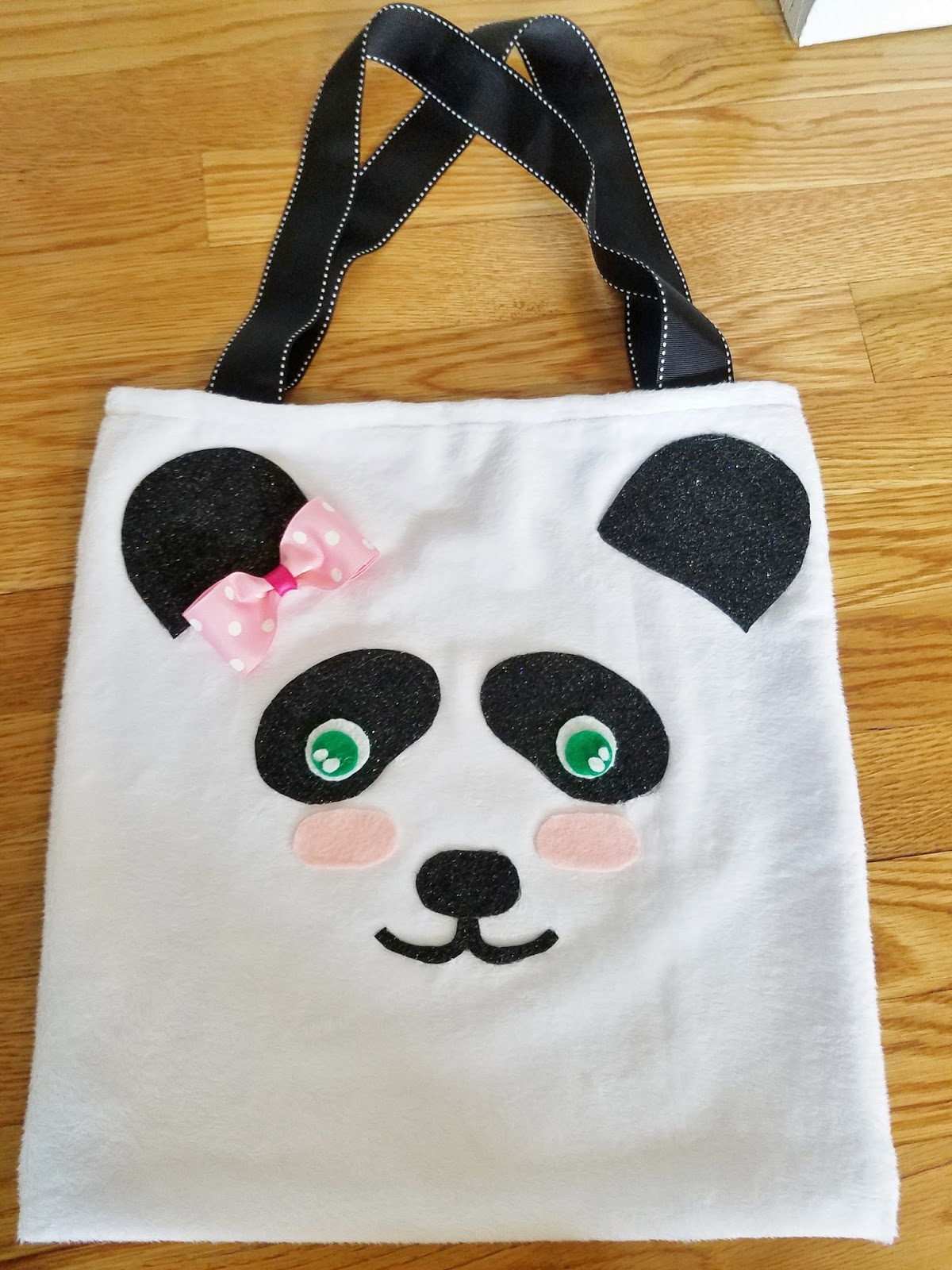 I made Kiersten a white, fuzzy bag and cut out black felt for a panda face. Pretty easy and fun!