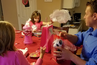 On Valentine's day the girls had school, so I had plenty of time to decorate the table and set out their gifts.